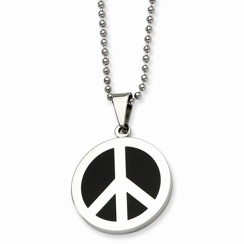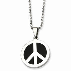 Stainless Steel Black Resin Peace Symbol Pendant On Necklace