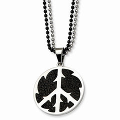 Stainless Steel Black Stingray & Peace Symbol Double Necklace