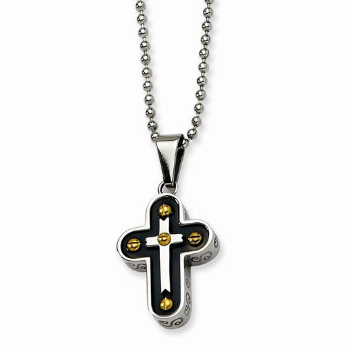 Stainless Steel Black & Yellow Ip-Plated Cross Necklace