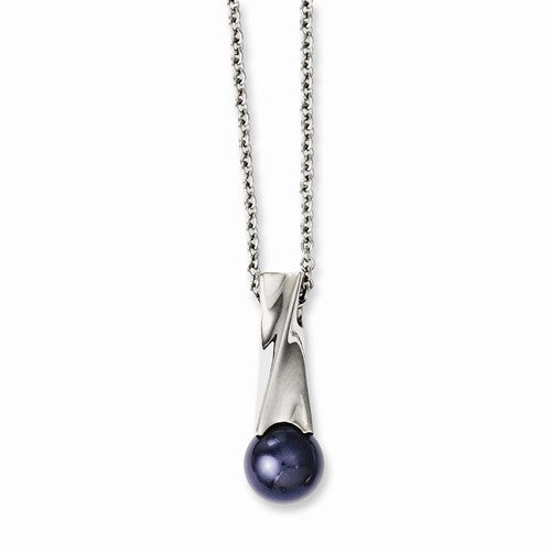 Stainless Steel Blue Simulated Pearl Polished Pendant On Necklace
