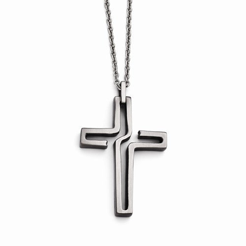 Stainless Steel Brushed Antiqued Cross Necklace