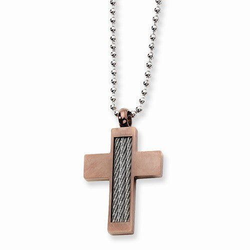 Stainless Steel Chocolate Ip-Plated Cross Necklace