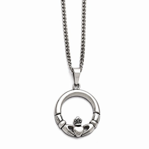 Stainless Steel Claddagh Pendant On Necklace