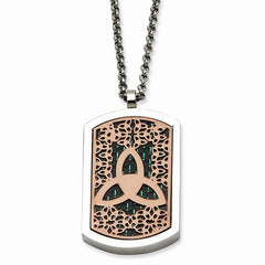 Stainless Steel Cross & Chocolate-Plated Trinity Symbol Reversable Dog Tag Necklace