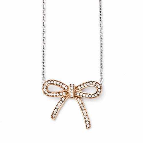 Stainless Steel Crystal Polished Bow Necklace