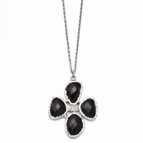 Stainless Steel CZ and Black Onyx Textured Necklace