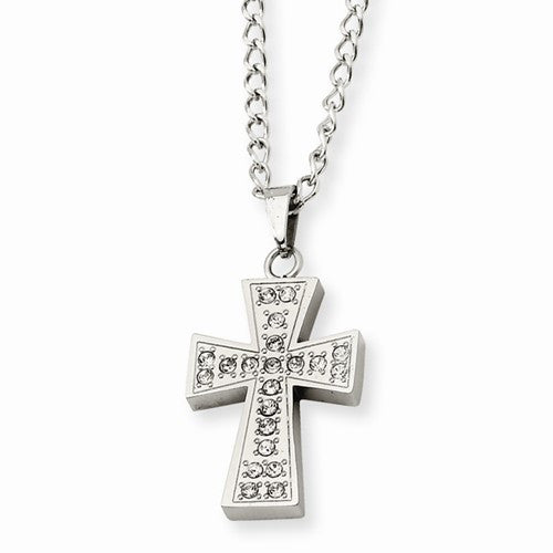 Stainless Steel CZ Cross Pendant On Necklace