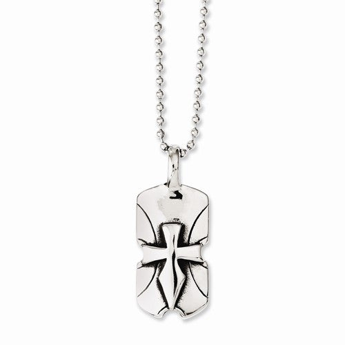 Stainless Steel Dagger Cross Dog Tag Necklace