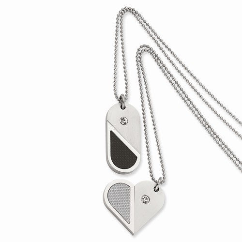 Stainless Steel Dog Tag Heart Convertible Pendant On Necklace
