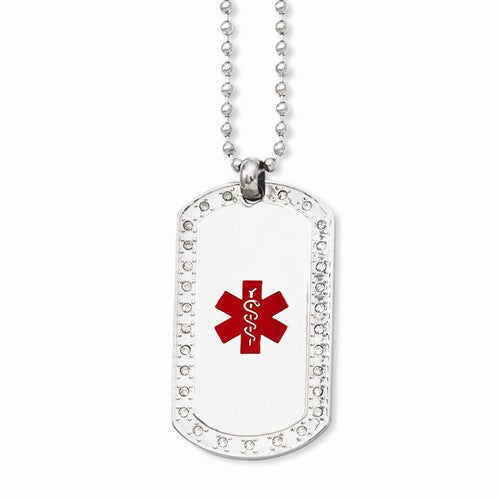 Stainless Steel Dog Tag with CZ Edge Medical Pendant Necklace