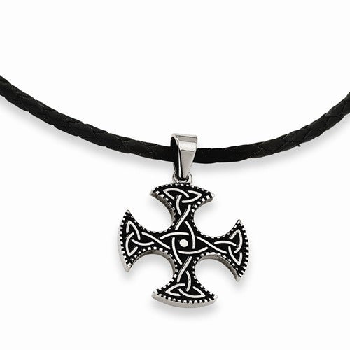 Stainless Steel Enameled Celtic Cross Pendant On Necklace