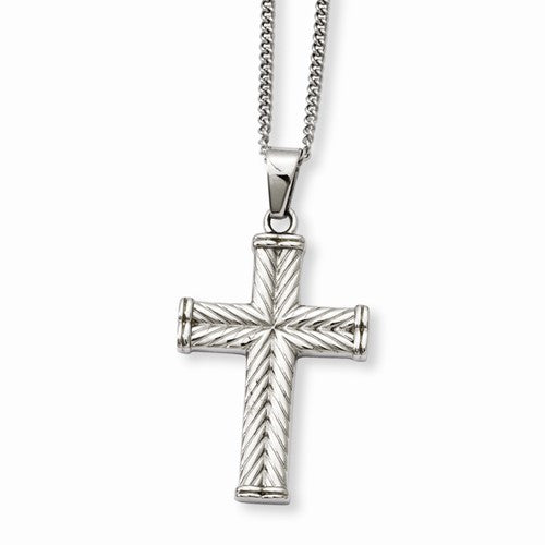 Stainless Steel Fancy Textured Cross Pendant On Necklace