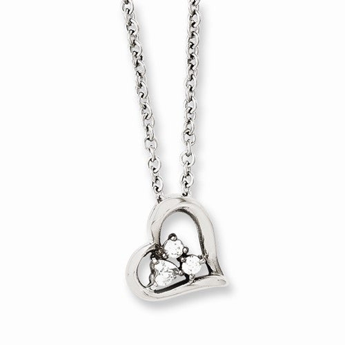 Stainless Steel Heart CZs Pendant On Necklace