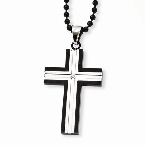 Stainless Steel Ip Black-Plated CZ Cross Pendant On Necklace