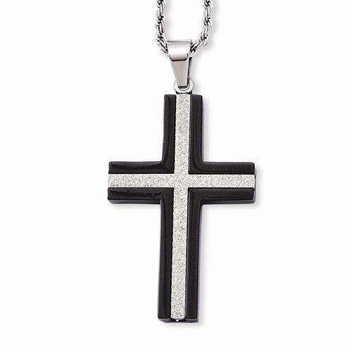 Stainless Steel Ip Black-Plated Laser Cut Cross Necklace