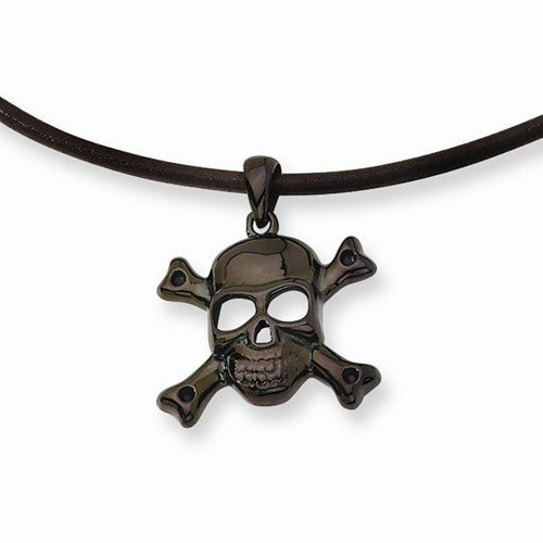 Stainless Steel Ip Black-Plated Skull Cross Bones Necklace