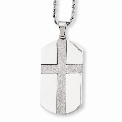 Stainless Steel Laser Cut Cross Center Dog Tag Necklace