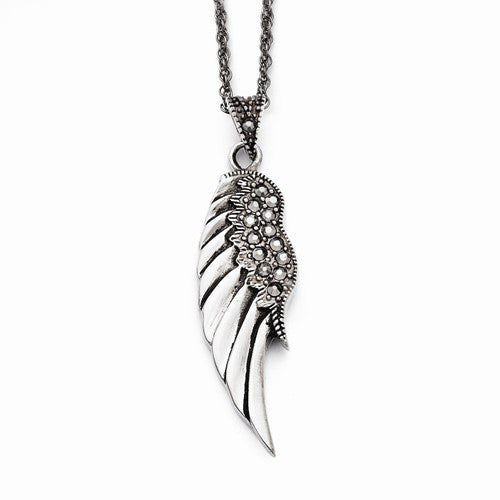 Stainless Steel Marcasite and Antiqued Wing Necklace