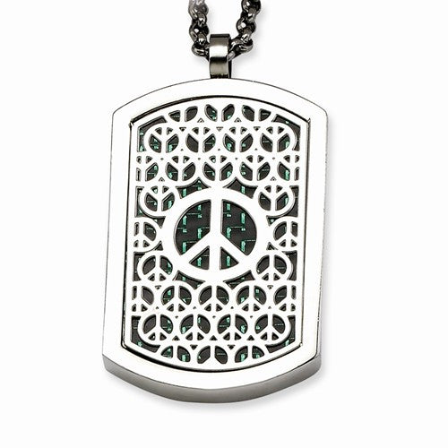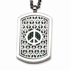 Stainless Steel Peace Symbol & Crosses Reversable Dog Tag Necklace