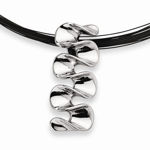 Stainless Steel Pendant On Black Wire Cord Necklace
