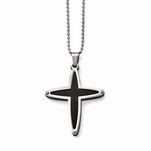 Stainless Steel Polished and Black Ip-Plated Cross Necklace