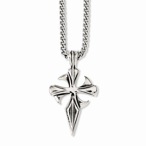 Stainless Steel Polished & Antiqued Dagger Cross Necklace