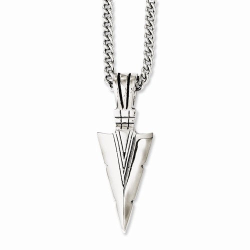 Stainless Steel Polished & Antiqued Dagger Necklace