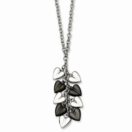 Stainless Steel Polished & Black Ip-Plated Hearts Necklace