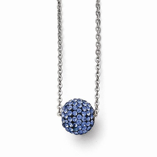 Stainless Steel Polished Blue Enamel Crystals Necklace