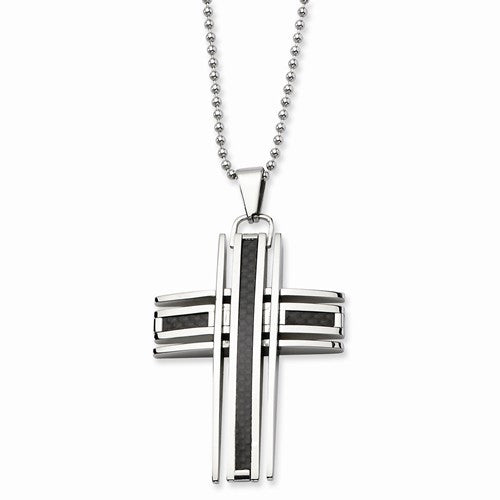 Stainless Steel Polished & Carbon Fiber Cross Necklace