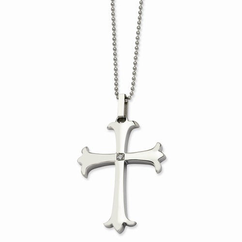 Stainless Steel Polished Cross CZ Pendant On Necklace