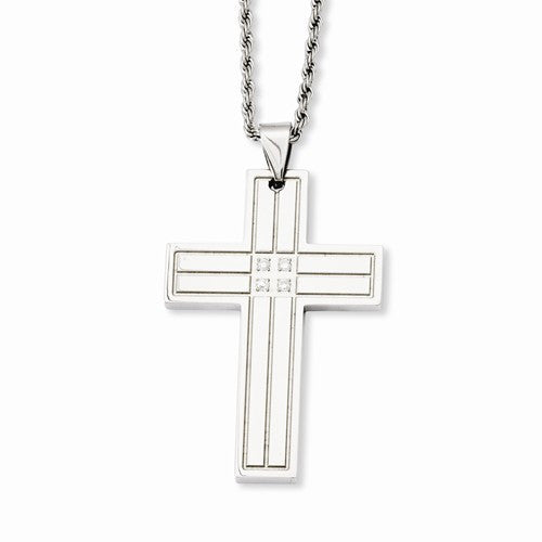 Stainless Steel Polished Cross CZs Pendant On Necklace