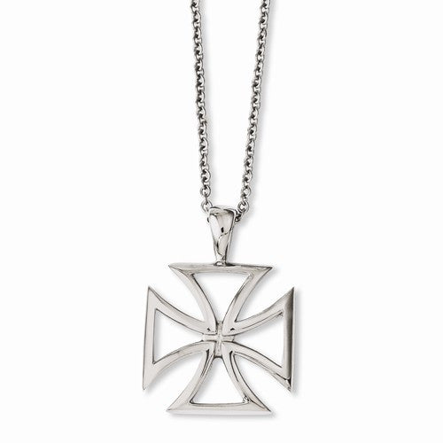 Stainless Steel Polished Cross Pendant On Necklace