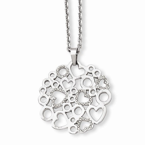 Stainless Steel Polished & CZ Hearts Pendant On Necklace