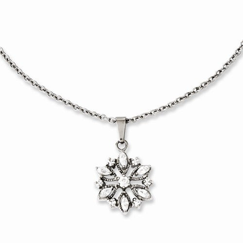 Stainless Steel Polished Flower CZs Pendant On Necklace