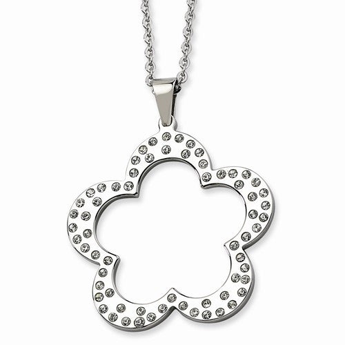 Stainless Steel Polished Flower CZs Pendant On Necklace