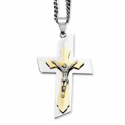 Stainless Steel Polished & Gold Ip-Plated Crucifix Pend Necklace