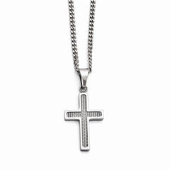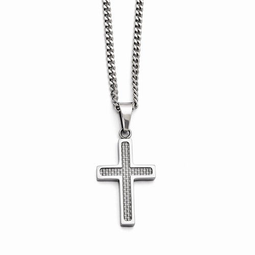 Stainless Steel Polished Grey Carbon Fiber Small Cross Necklace