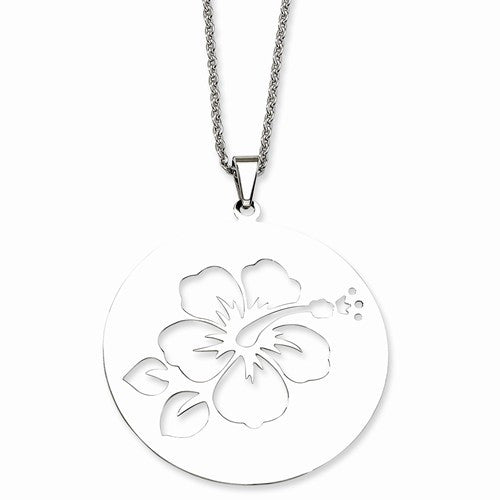 Stainless Steel Polished Hibiscus Cutout Pendant On Necklace