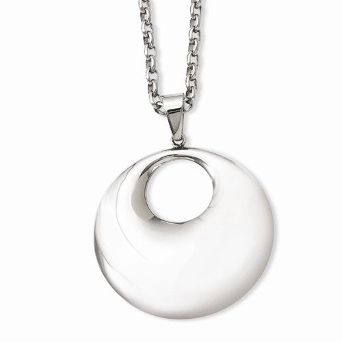 Stainless Steel Polished Hollow Circle Pendant On Necklace