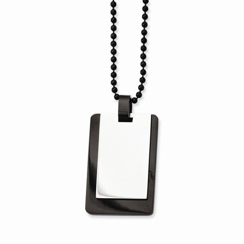 Stainless Steel Polished & Ip Black-Plated Dog Tag Necklace