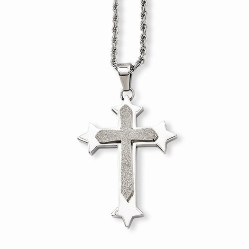 Stainless Steel Polished & Laser Cut Cross Pendant On Necklace