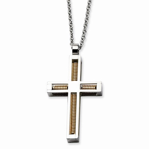 Stainless Steel Polished & Pink Ip-Plated Cross Necklace