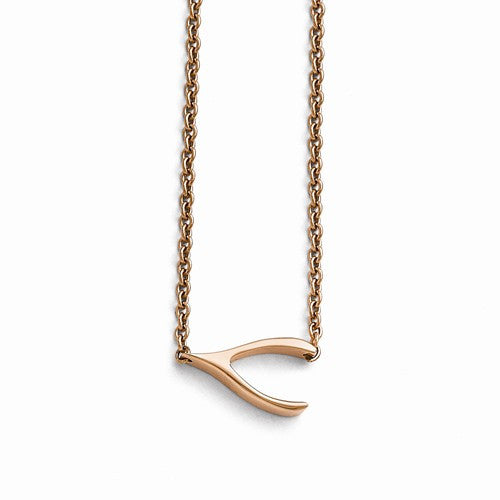 Stainless Steel Polished Rose Ip-Plated Sideways Wishbone Necklace