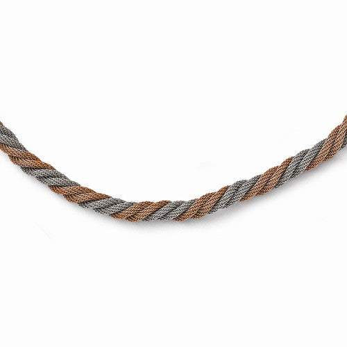 Stainless Steel Polished Rose Ip-Plated Twisted Mesh Necklace