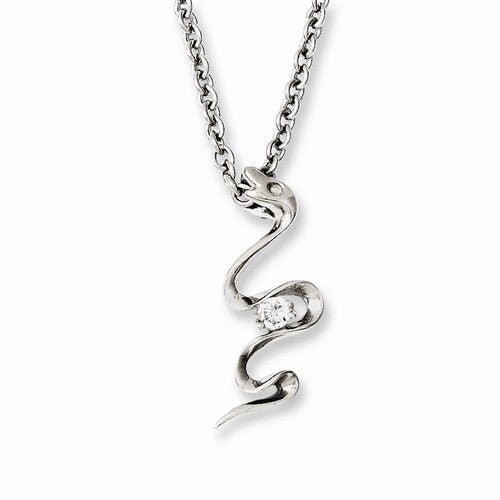Stainless Steel Polished Snake Swirl CZ Necklace