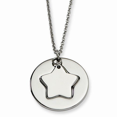 Stainless Steel Polished Star & Star Cutout Necklace