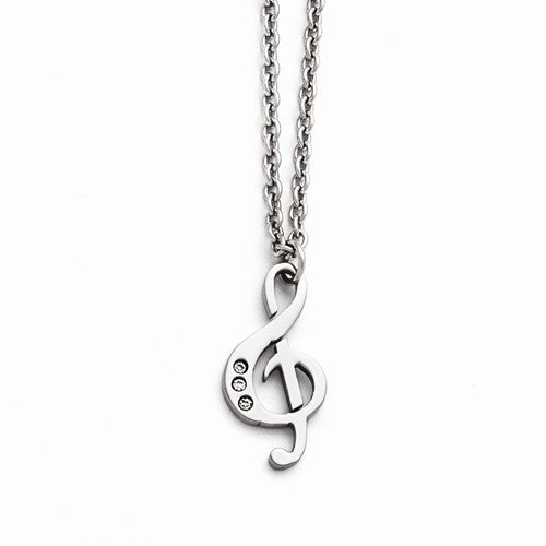 Stainless Steel Polished Treble Clef Crystals Necklace