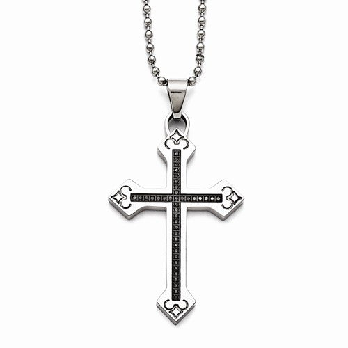 Stainless Steel Polished, Tw Diamond Cross Necklace