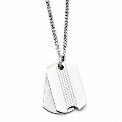 Stainless Steel Polished Two Piece Dog Tag Pendant On Necklace